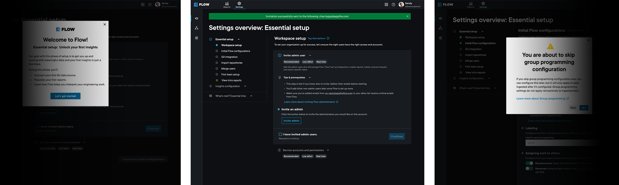 Flow is inherently complex and takes a long time for new customers to set up. Historically, challenges come from multiple factors, such as securing the correct permissions to configure integrations, long data ingestions timelines, and understanding Flow metrics, terminology, and next steps based on the team data surfaced. Many of these blockers were outside Flow’s direct control and required significant coordination between Flow champions and customer teams, increasing setup time and support dependency.