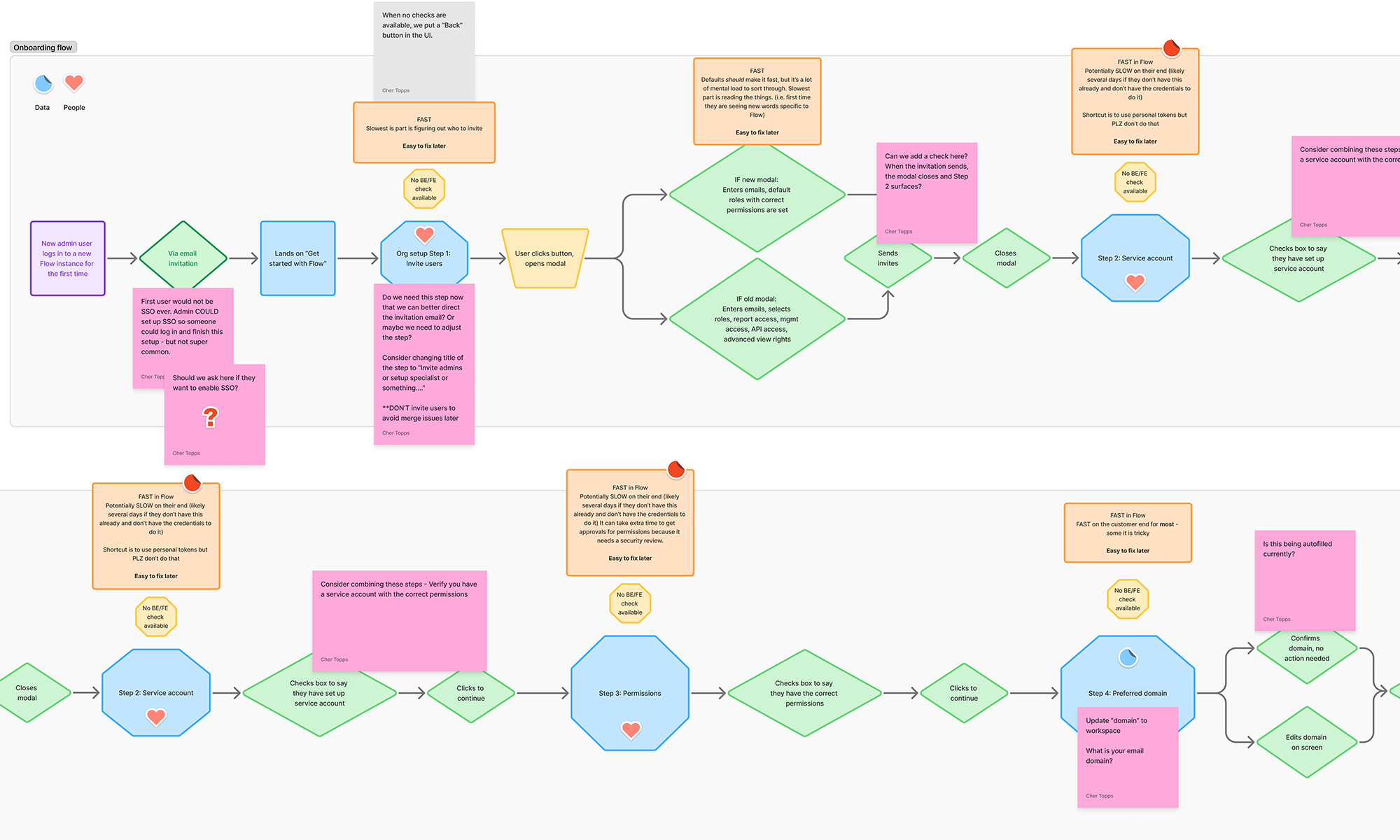 I began with documentation of current onboarding practices. I interviewed internal stakeholders in the onboarding process and mapped out the user journey, marking pain points and common areas of confusion, as well as labeling the amount of time, effort, and how critical each step is to get a user up and running. From this, I was able to create a suggested user flow for a new onboarding experience in a few phases.